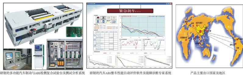 针对汽车制动与ABS整车不解体检测理论与关键共性技术难题,在路面附着系数模拟;基于正交编码器的汽车制动与ABS试验台轴距动态调节与精确控制;信号调理、数字滤波、信息融合、故障诊断与通信等多项技术在智能测控节点上的集成;不同重量等级汽车制动与ABS性能检测;汽车ABS整车工作性能自动判别方法等方面取得突破和创新。该成果获得2014年国家科技进步二等奖。